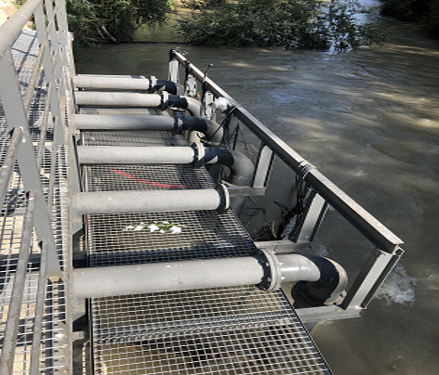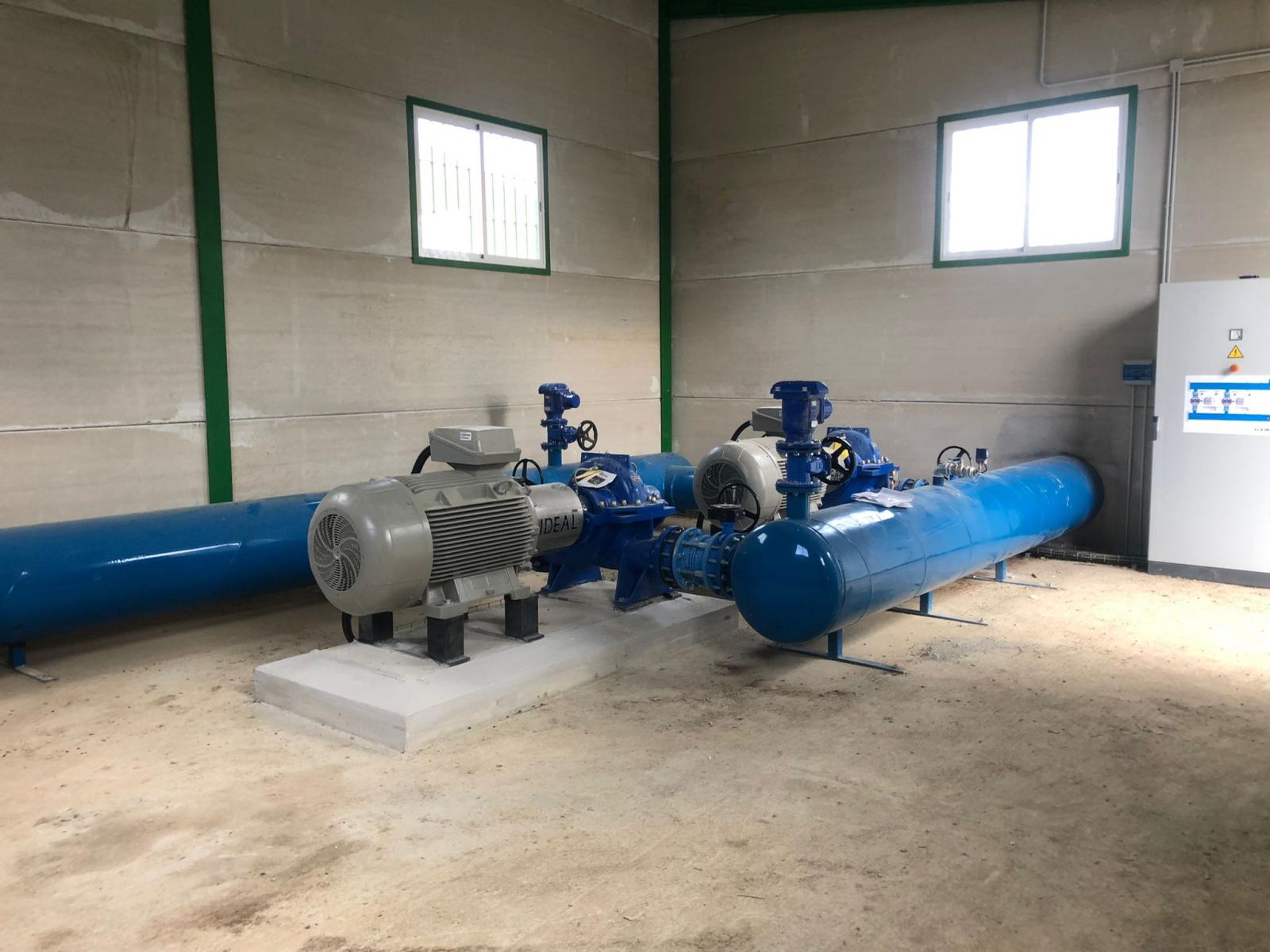 Uno de los elementos clave del sistema es la toma del río Guadalquivir, que permite captar agua de una de las principales fuentes hídricas de Andalucía. Esta toma está conectada a una nave de motores, equipada con sistemas de impulsión que garantizan el transporte del agua hacia el resto de la red.